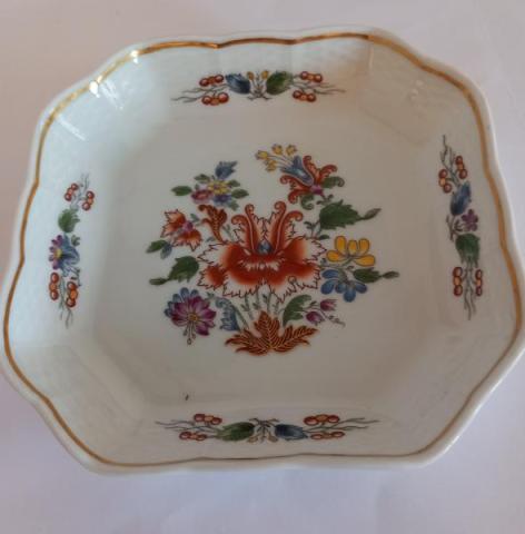 Vuotatasche quadrato con decoro "Tulipano", decoro documentato sul quaderno di Doccia N. IX-2016 pag. 20 già dal 1745 - 1750
