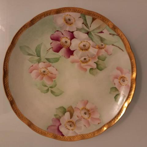 Periodo 1900/1920 per questo piatto di cm. 23 dipinto magistralmente dal pittore fiorista con firma O.P.