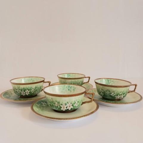 Decoro in verde, bianco e oro decorato anche all'interno della tazza