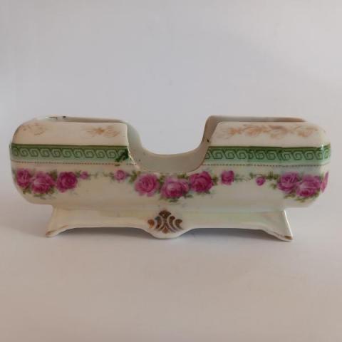 Fine '800 primi '900 per questo particolare portastecchini decorato in oro, rosso e verde, con tutti i segni del tempo e dell'uso