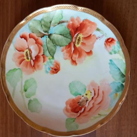 Piatto cm. 22 circa con decoro rose rosse campestri, dipinto a pennello dai fioristi di doccia